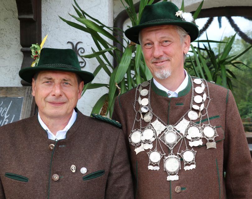 Foto: Der Sachranger Schützenmeister Martin Bichl (links) übergab die Schützenkette an den neuen Schützenkönig Jens Wagner.