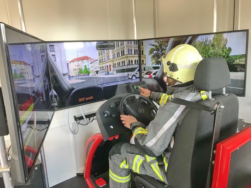 Die Feuerwehren im Landkreis Rosenheim können nun, als eine der ersten in Bayern, in einem der neuen Einsatzfahrten-Simulatoren das richtige Verhalten bei kritischen Situationen im Straßenverkehr üben. Dies ist eine Besonderheit, denn bislang konnten Blaulichtfahrten nicht auf der Straße oder auf Übungsplätzen realistisch trainiert werden.