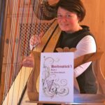 Bericht und Foto: Franz Krammer – Das Bild zeigt Karin Schroll mit ihrer Harfe und dem neuen Notenheft „Harfenstückl 2“.