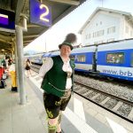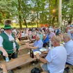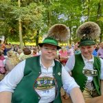 Foto/s: Hötzelsperger – 1. Michael Schneider vom Trachtenverein Edelweiß Westchester New York mit Vorstand Michael Schlosser vom Trachtenverein Atzing beim Waldfest im Buchenwald von Munzing. 2. Abschied am Bahnhof Prien.