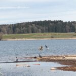 An diesem ruhigen Märztag ist der Wasserstand ungewöhnlich niedrig. Nur ein einzelner Kormoran ist zu sehen, während sich kaum andere Wasservögel blicken lassen. Doch trotz des wenigen Wassers und der stillen Atmosphäre bleibt die Prienmündung ein faszinierender Ort voller natürlicher Schönheit.