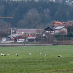Die Störche scheinen den Chiemgau nicht verlassen zu wollen! Immer noch hält sich eine große Gruppe von 20 bis 30 Weißstörchen im Dezember bei Bernau am Chiemsee auf – ist das die Vorausahnung eines milden Winters?