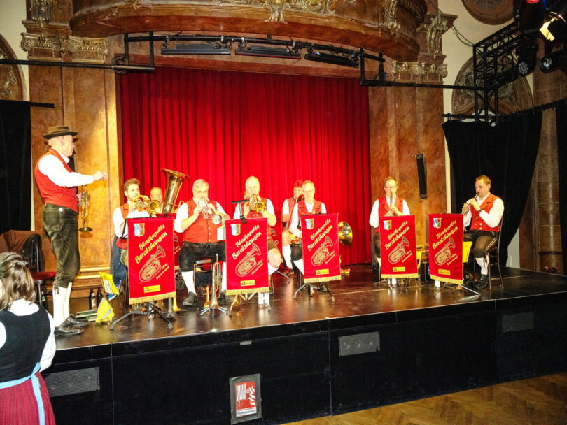Bei der Eröffnung der Münchner Ballsaison spielten sich die jungen und junggebliebenen routinierten Musiker, die auch als Oberpfälzer Gautrachtenkapelle in ganz Bayern bekannt sind bereits beim 11. Oide Wiesn Bürgerball in der Landeshauptstadt mit ihrem schmissigen Volksmusikprogramm aus Zwiefachen, Polkas, Schottisch, Walzern, Figuren- und bekannten Volkstänzen gekonnt auf. Volkstanzbegeisterte Trachtler und auch Münchner Bürger nutzen die Gelegenheit zwischendurch immer wieder im Silbersaal der Münchner Kultureinrichtung Oberbayerische, Oberpfälzer oder fränkische Volkstänze aufs Parkett zu legen. Bei den allgemeinen Tanzrunden der Beratzhauser Musiker aus Boarischen, Rheinländern, Zwiefachen, oder Wienerwalzer war sowieso die Tanzfläche bis auf den letzten Platz gefüllt. Für den richtigen Schritt sorgten das Tanzmeister- Ehepaar Melanie und Christian Baumann. Neben den Beratzhauser Musikanten spielten die Oktoberfestmusikanten mit Wolfgang Grünbauer und die Cagey Strings unter der Leitung von Michael Peyerl sowie das Trio „Out of Minga“ vor den rund 870 Gästen in den Ball- und Tanzsälen auf. Daneben offerierte die Faschingsgesellschaft Narrhalla München ihr Showprogramm mit der Prinzengarde und dem Hofstaat. Rund 32 Repräsentanten-Paare der Gauverbände des Bayerischen Trachtenverbandes repräsentierten mit Platter- und Volkstanzeinlagen die derzeitige Trachtenkultur Bayerns.Die Original Münchner Schäffler zeigten zudem mit dem Münchner Kindel ihren traditionellen Tanz. Die Blaskapelle Forstenried beeindrucke im Empfangsbereich und im großen Ballsaal die Gäste mit gekonnten Märschen. Die Rottauer Tanzlmusi, aus dem Chiemgau, unterhielt die vielen Gäste musikalisch im Foyer. Das vielseitige Programm des Festrings München mit seinem Präsidenten Karl Heinz Knoll begeisterte erneut seine Gäste aus ganz Bayern. Insgesamt sorgten rund 200 Mitwirkende für Volkskultur und Faschingsgaudi. Georg Kleesattel aus dem Hause führte charmant und unterhaltsam durch den Ballabend. Bis zwei Uhr früh schwangen die Tanzpaare in tollen bayerischen Trachten ihre Beine. (RS).