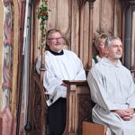 Ein Mesner braucht ein freundliches Wesen, so Wolfgang Mösmang weiter, steht denn auch in der Bibel „Lasset die Kinder zu mir kommen“ und seien es die vielen Fragen der Ministranten vor den Gottesdiensten die Alois mit Ruhe und Gelassenheit beantwortet hat. Vom Evangelisten Lukas wird geschrieben, dass er ein Arzt gewesen sei, was auch auf einen Mesner zutreffend sei, wird denn immer wieder mal einen in der Kirche übel und da ist natürlich der Mesner als Ersthelfer gefragt. Alois Hofstetter hat sich weit über seinen Dienst in Kirche und Sakristei eingebracht, waren es unteranderem die legendären Ausflüge, die er mit den Ministranten alljährlich unternommen hat, wie auch bei die vielen Taxifahrten, bei denen er und seine Frau Angela die Pfarrer, Diakone, Gemeindereferenten, oder sonst wem, von A nach B gefahren hat. Was ihm auch sehr am Herzen lag, war die Bibelstelle wo Jesus Menschen begegnete und mit ihnen Mahl gehalten hat, die er mit der Gründung des Sakristeistüberls in Obing umgesetzt hat, wo nach den Gottesdiensten das kirchliche Fest weitergefeiert werden konnte. Mit „Geistreichem“ aus der Sakristei wurden auch die Lobesworte der Kirchenbesucher über die schönen Christbäume gefeiert, wo Alois immer ein Schnapserl parat hatte. Ganz besonders passt der Bibelspruch: „Die Ersten werden die Letzten sein“ zum Messner, Pfarrer David Mehlich spricht davon, dass der Messner der erste sei, der in die Kirche kommt, aufsperrt und der letzte, der nach dem Zusammenräumen wieder nach Hause geht. Den herzlichen Dankesworten des Pfarrers hat sich ein langanhaltender Applaus der Gottesdienstbesucher angeschlossen.