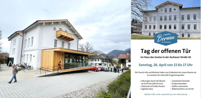 Am Sonntag, 26. April öffnet das neue Haus des Gastes in der Gemeinde Bernau ganz offiziell seine Türen! Alle Bürgerinnen und Bürger sind herzlich eingeladen, die Räumlichkeiten von 13-17 Uhr zu besichtigen.