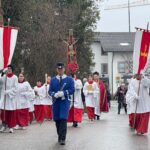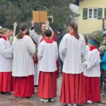 Trotz eines erfrischenden Schneetreibens ließen sich viele Gläubige nicht vom Kommen abhalten. Pfarrer Philipp Werner erinnerte daran, dass der Palmsonntag der Beginn der schönsten Woche für die Katholische Kirche ist, da dem Leiden die Auferstehung folge. Mit dabei bei den Griesesr Feierlichkeiten mit Segnung der Palmzweige war auch ein Esel namens Paulchen. Nach den Gebeten und der Segnung ging es zu den Gottesdienst-Feierlichkeiten in die Kirche “Mariä Himmelfahrt” und in das Pfarrheim (für Kinder und Familien).