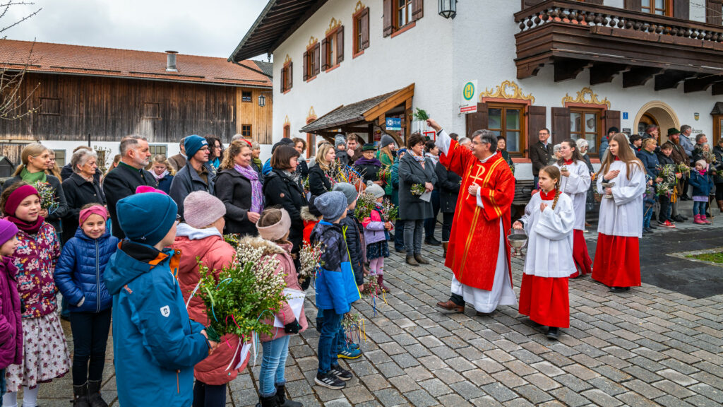 Festliche Palmweihe in Törwang läutet wichtige Tage des christlichen Glaubens ein: Traditionelle Palmbuschen aus Weidekätzchen und bunten Bändern.