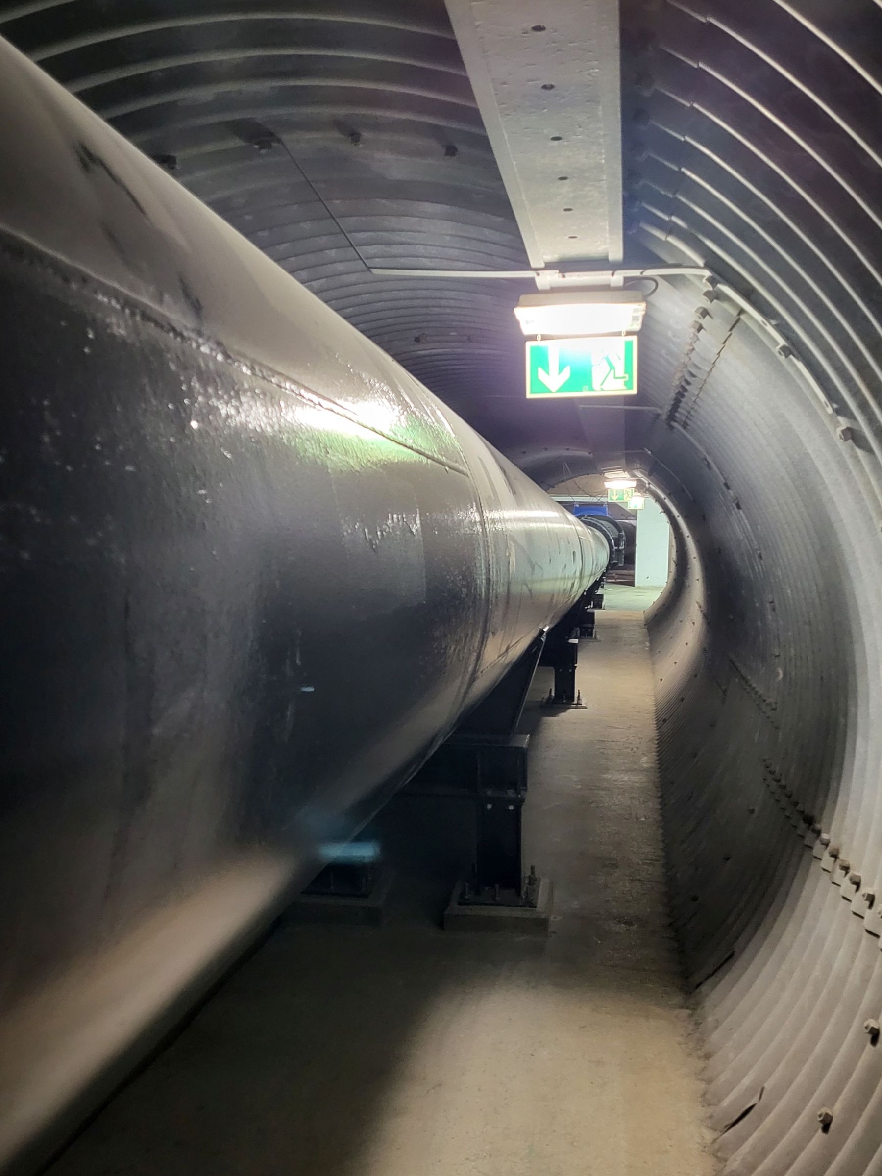 26 Meter tief unter der Erde liegt der Stollen, der vom Krafthaus hinauf führt zum Surspeichersee. Hier liegt auch die Betriebsauslassleitung, ein Rohr mit einem Durchmesser von 1,20 Metern. Foto: Wasserwirtschaftsamt Traunstein