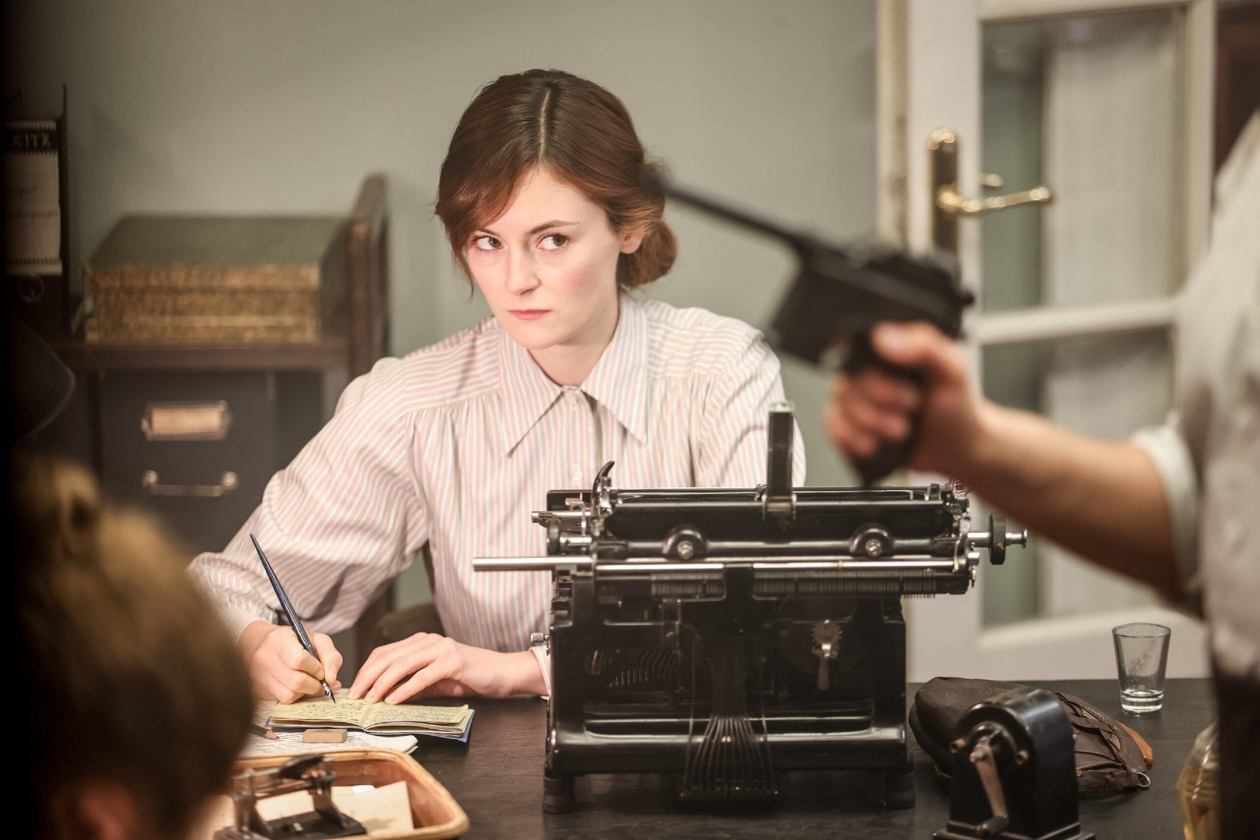 Hitlerputsch – Ein bewaffneter Mann in der Redaktion, Paula Schlier (Lea van Acken) hat Angst.