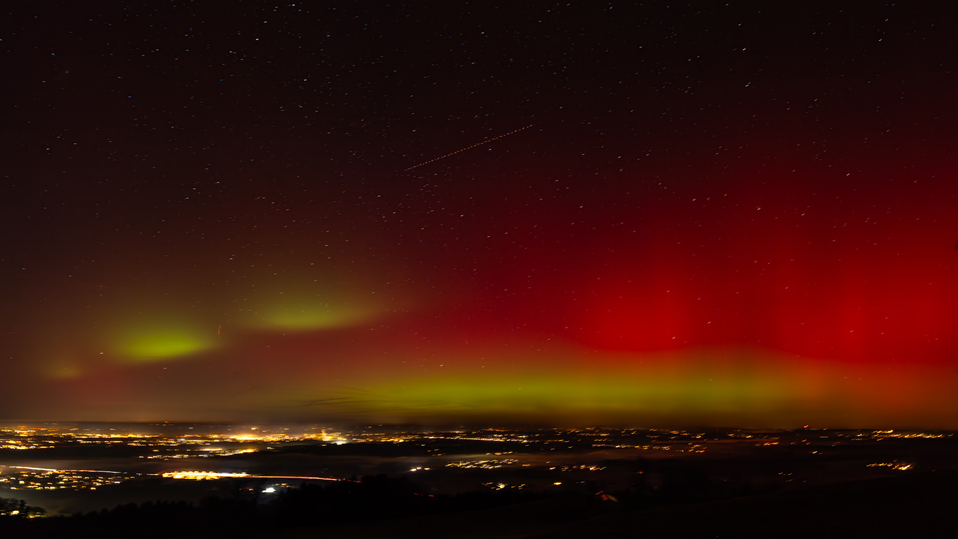 Polarlichter über dem Samerberg: Rot-grünes Himmelsspektakel an der Aussichtskapelle