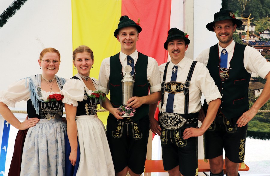 Pokalsieger vlnr: 2. Gaudirndvertreterin Kathrin Brem, 1. Gaudirndlvertreterin Johanna Wagner, Pokalsieger Josef Künzner, 1. Gauvorplattler Sepp Bauer, 2. Gauvorplattler Rupert Treml