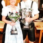 Fotos: 1. Alle Teilnehmer beim Preisplatteln des GTEV Hochries-Samerberg (Vorständins Ramona Sattlberger ganz rechts) – 2. Stefanie Sattlberger und Quirin Stadler, Gewinner in den Aktivenklassen mit ihren Pokalen