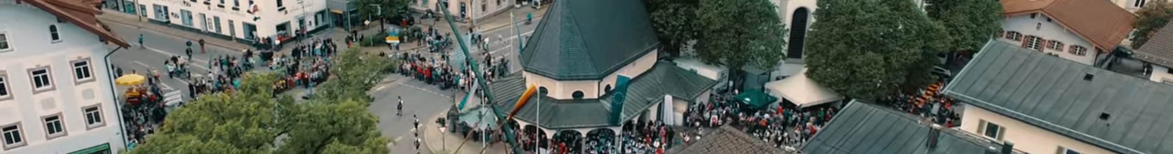 Foto: Luftaufnahmen vom Maibaumaufstellen 2018 sind im Werbespot der Prien Marketing GmbH zu sehen.