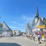 Mit einem kleinen Spritzer und mit zwei gekonnten Schlägen hat Priens Erster Bürgermeister Andreas Friedrich das heurige Priener Marktfest eröffnet.