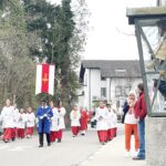 Geschlossen ging es wieder mit dem liturgischen Dienst über die Prien-Brücke zurück und alsdann versammelten sich die Gläubigen noch in der Pfarrkirche und auch im Pfarrheim zu Palmsonntags-Feierlichkeiten.