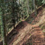 - Trail: Vorsicht – stellenweise Absturzgefahr! Nach 1,3 km biegen wir rechts in Forststraße ein.