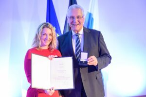 Aushändigung der Ehrenzeichen mit Innenminister Joachim Herrmann (r) für Daniela Weißim Aufseßsaal des Germanischen Nationalmuseums für Verdienste im Ehrenamt, aufgenommen am 31.10.2025 in Nürnberg.Foto: Timm Schamberger / Bayerische Staatskanzlei
