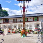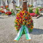 Fotos: Theresa Fritzenwenger, Gaupressewartin Chiemgau-Alpenverband – Blumenkranz zum Gedenken an die Verstorbenen des Festvereins und des Chiemgau-Alpenverbandes im Friedhof von Reit im Winkl