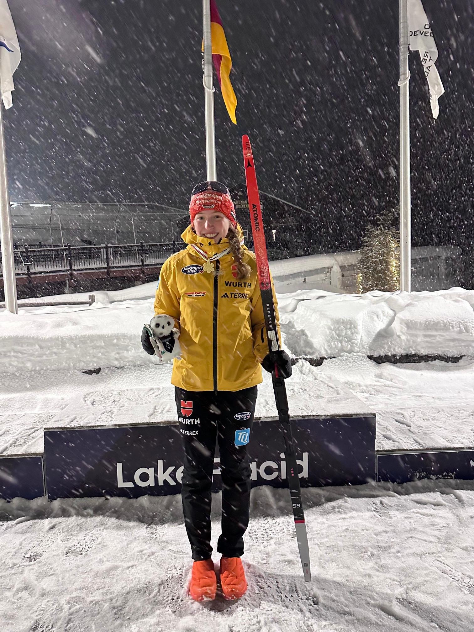 Trine Göpfert bei der Siegerehrung in Lake Placid