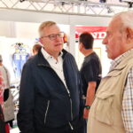 Der älteste Rennfahrer Fred Huber (*1936), lobt in den höchsten Tönen die Ausstellung in Obing und spricht dem MFG ein sehr großes Lob für die viele Arbeit und die „so schöne Ausstellung“, wie er sagt, aus. Mit seinem Bruder Sepp rockten die „Huaba Buam“ couragiert, talentiert und zielstrebig ab 1958 in ihrem BMW-Seitenwagen-Gespann die Rennszene und eilten von Sieg zu Sieg. Nach ihrem „Problemrennen“, dem großen Preis von Österreich, beendete das Brüderpaar 1966 die gemeinsame Karriere, die mit zwei Deutschen Juniorenmeistertiteln und zahlreichen Podest-Plätzen recht erfolgreich war. Sepp Huber (*1934 – +2023) stieg anschließend als Co-Pilot von Arsenius Butscher und Rolf Steinhausen zum damals wohl weltbesten Beifahrer auf. Er krönte seine Laufbahn mit zwei Weltmeister- und einem Vizeweltmeistertitel. Fred Huber bewies von 1964 bis 1966 auch als Bob-Fahrer in den steilen Kurven des der Eisbahn sein fahrerisches Können. Ein Highlight der Ausstellung war sicherlich das Weltmeister-König-Renngespann von 1976 von Rolf Steinhausen und Sepp Huber, dass eigens für das Event von … nach Obing geholt wurde.