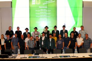 Rund 25 Beteiligte der Sicherheitsbehörden und Kräfte haben sich monatelang auf das Gaufest vorbereitet – hier ein Gruppenbild im Saal des Landratsamtes