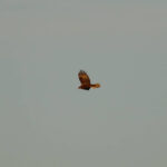 Zum Abschluss erhob sich der riesige Vollmond hinter der herbstlich glühenden Landschaft, während die Sonne unterging. Der Mond steht dieser Tage besonders nah an der Erde, und der kleine weiße Fleck daneben entpuppt sich als eine schöne Kornweihe. Damit sind bereits die ersten Überwinterer aus dem hohen Norden eingetroffen.