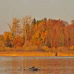 An der Prienmündung wartete die nächste Überraschung: ein Seidenreiher. Das gibt es nicht alle Tage! Am Himmel kreisten Lachmöwen und eine Rohrweihe, während weiter weg die letzten Kraniche heimwärts zogen.