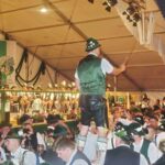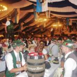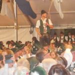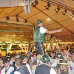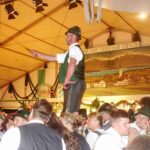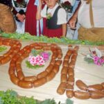 „Eigentlich wollten wir ein lebendes Ferkel für eine zukünftige gemeinsame Brotzeit mitbringen, aber nachdem es uns entwischt war, haben wir uns dazu entschlossen, es wieder einzufangen und es zu veredeln. Deswegen bringen wir auf einem großen Brett einen Hunderter aus Handwürsten mitsamt einem Faß Bier“ – so Vorstand Hans Riepertinger vom Patenverein „Ratzingerhöhe“ Greimharting.