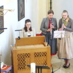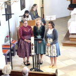 Fotos: Hötzelsperger – 1.  27 Schülerinnen schafften einen erfolgreichen Abschluss an der Fachschule für Hauswirtschaft an der Landwirtschaftsschule Rosenheim unter der Leitung von Anna Bruckmeier (sitzend Mitte).  2. Die vier Besten Abschlüsse v.l.n.r.: Elisabeth Anna Engelsberger, Anna Elisabeth Haimmerer, Johanna Huber und Julia Kiesl. 3. Andacht in der Kirche Westerndorf St. Peter.