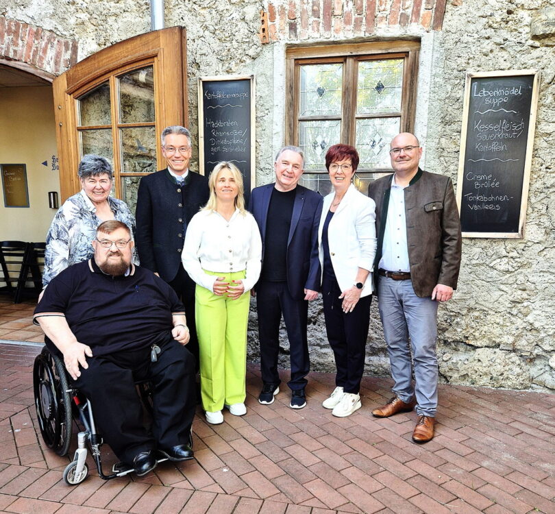 Bericht und Foto: Rosi Raab – von links: Stellvertretender Vorsitzender Hans Loy, die ehemalige Kreisvorsitzende Marianne Keuschnig, Landrat Otto Lederer, VdK-Landesvorsitzende Verena Bentele, der neue Kreisvorsitzende Willi Hofmann, die Stellvertretende Vorsitzende Ulrike Plankl und VdK-Kreisgeschäftsführer Dietrich Mehl.