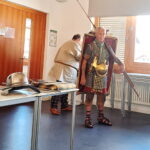 Bevor sich die Schüler alle mitgebrachten Gegenstände, darunter auch viel in mühsamer Handarbeit Gefertigtes, aus der Nähe betrachten und in die Hand nehmen durften, waren noch zwei Freiwillige gesucht. Eingekleidet in Stola und Tunika machten sie als Römerin und Römer eine kurze Zeitreise in die Vergangenheit. Ein abwechslungsreicher Vormittag mit vielen informativen Details. Antike zum „Begreifen“. Auch für nächstes Schuljahr ist ein Besuch der Legio II am LTG Prien fest eingeplant.