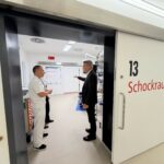 Ärztlicher Direktor Dr. Gordon Hoffmann (li) informiert Landrat Otto Lederer über Ausstattung und Abläufe in der Akutversorgung von Schwer- und Schwerstverletzten im Schockraum. Foto: RoMed Kliniken