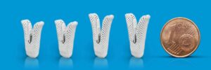 Der MitraClip im Größenvergleich. Bild: MitraClipTM is a trademark of Abbott or its related companies. Reproduced with permission of Abbott, © 2021. All rights reserved.