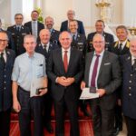Fotos: Jürgen Makowecz, Innenministerium Wien – Von li nach re: Kreisbrandrat Kreisbrandinspektion LKr. Rosenheim Richard Schrank, 1.Vorsitzender des Landesfeuerwehrverbandes Bayern e.V., Johann Eitzenberger, DI Abdallah Sharief, Präsident UNO-UNCAV, Vertreter der Arabischen Emirate, Dr. Abdelbagi M. ELFAKI, University of Sharjah, United Arab Emirates, 1.Vors. Firstresponder Chiemsee Nord Christian Glas.