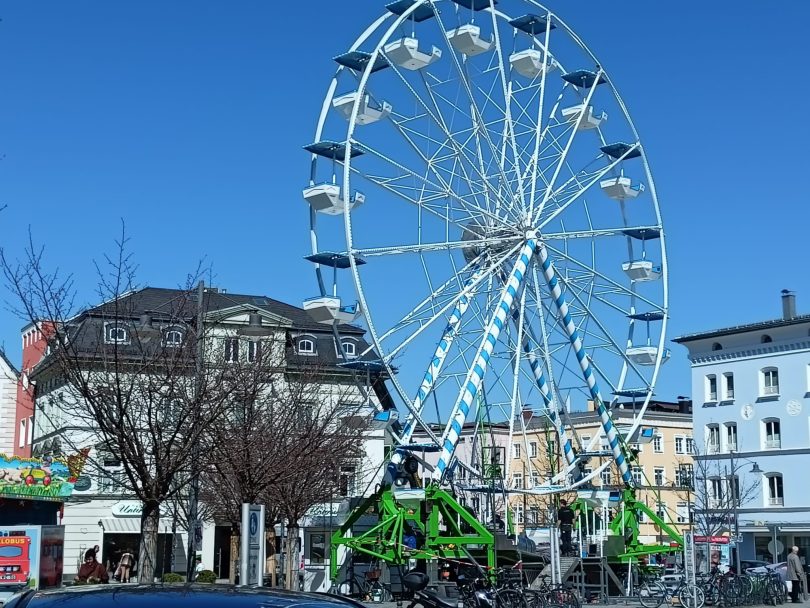 Wie berichtet rüstet sich die Stadt Rosenheim für Freizeit- und Volksfestfreuden auf verschiedenen Plätzen. Aktuell diese Bilder vom Aufbau des Riesenrads am Ludwigsplatz in Rosenheim.