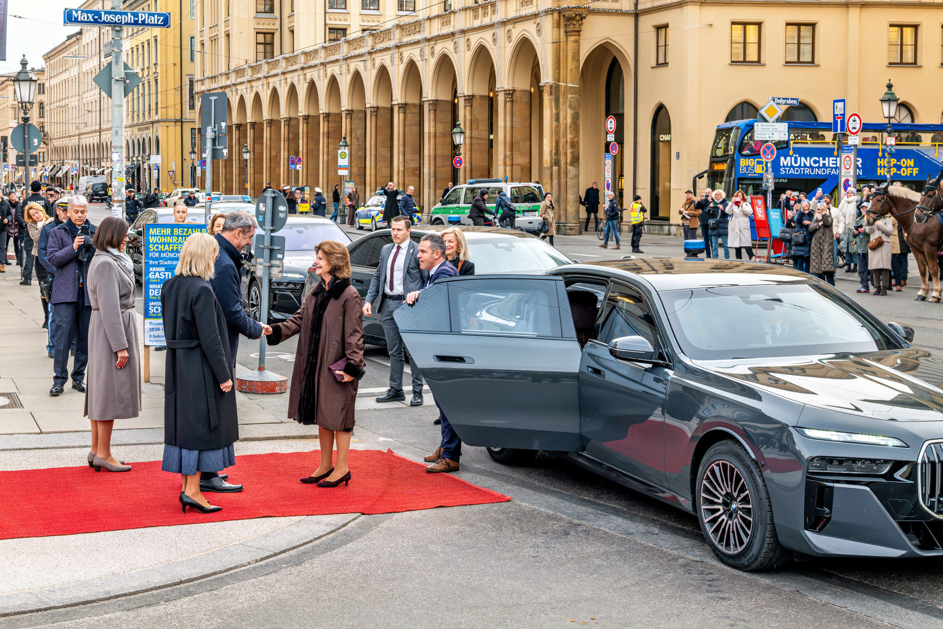 Roter Teppich für Schwedens Königin Silvia: Empfang mit Gebirgsschützen und bayerischer Tracht in München