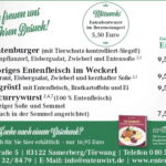 Der Samerberger Entenwirt bereichert den Markt dabei mit einer Auswahl an Spezialitäten rund um die Ente. Angeboten werden unter anderem ein Bio-Entenburger mit Entenpflanzerl, Eisbergsalat, Zwiebeln und Entensoße sowie knuspriges Entenfleisch im Weckerl mit Rotkraut, Salat, Zwiebeln und herzhafter Soße. Zudem stehen Entengröstl mit Bratkartoffeln und Ei sowie eine Entencurrywurst aus reinem Entenfleisch mit würziger Soße und Semmel zur Auswahl.