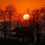 Schönstes und beständiges Frühlingswetter sorgt derzeit tagsüber für angenehme Temperaturen und in kurzen Zeitphasen und an besonderen Plätzen beim Sonnenuntergang auch noch zu einem farbigen Naturschauspiel – davon zeugen diese aktuellen Aufnahmen, die auf dem Samerberg im dortigen Gemeindeteil Steinkirchen entstanden und die beim Blick durch das Geäste des Waldes auch das einzige -derzeit aber nicht vermietete- Baumhaus vom Samerberg erkennen lassen.