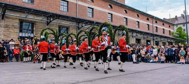 In roten Jacken, mit grünen Kappen und Buchsbaum-Bögen zeigen die Münchner Schäffler alle sieben Jahre ihren traditionellen Tanz. Der Schäfflertanz entstand der Legende nach im 16. Jahrhundert zur Zeit der Pest – als Zeichen von Lebensmut und Zuversicht. Heute ist er ein lebendiges Stück Stadtgeschichte.