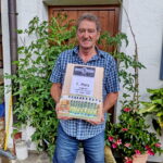 Foto: Hans Winkler zeigt mit Freude und Stolz seinen 1. Preis von den Lenggrieser Schafkopfmeisterschaften