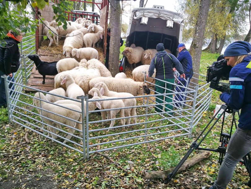 Zu Ende ist für die gut 50 Schafe die paradiesische Sommer- und Weidezeit auf der Krautinsel im Chiemsee. Christine Perl und ihr Opa Michael Berneder holten ihre Tiere wieder zurück auf das Festland. Dabei ging es zuerst mit der Fähre von der Krautinsel nach Gstadt und von dort mit dem Traktor weiter in das Winterquartier nach Bernau-Schörging. “Man sieht es den Schafen an, die Krautinsel hat ihnen gut getan” – so Michael Bernder in seinem dankbaren Resümee.