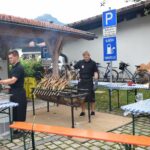 Es bildeten sich auch schnell lange Schlangen für die angebotenen Schmankerl. Ein besonderes Highlight waren die Steckerlfische, die am offenen Feuer fachkundig zubereitet wurden. Die Besucher wurden verwöhnt mit frisch gezapftem Bier und alkoholfreien Getränken. Aber auch der frisch gebackene Kuchen mit Kaffee fand regen Zuspruch. Die Kinder hatten ihre Freude mit der großen Hüpfburg und Popcorn und Zuckerwatte vom Verein „Murmeltiere“. Für die Musik war diesmal aus dem Salzburger Land die Musikkapelle „deBlechan“ angereist, die zwischen den Musikstücken humorige Einlagen für die Gäste brachten.