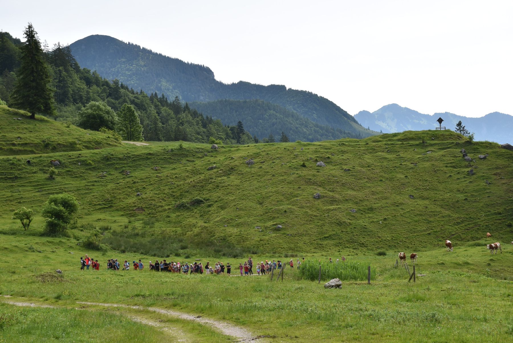 die Grundschüler mit ihren Lehrerinnen auf dem Weg zum ersten Kaser