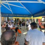 Bruckmühls Bürgermeister Richard Richter empfing die Gäste, eröffnete den Tag der offenen Tür und führte selbst Besucher durch die Räumlichkeiten und erklärte wie auch Bauleiter Vinzenz Schaberl (gemeindliches Bauamt) alles Wissenswerte zum Um- und Neubau. „Mit der Kulturmühle haben wir einen Treffpunkt geschaffen. Hier sollen Menschen zusammenkommen, sich austauschen und glücklich wieder heimgehen. Das Gebäude wurde nun gut 130 Jahre nach seiner Errichtung als Bahnhofsrestauration liebevoll, detailgetreu und aufwändig revitalisiert“, erläuterte Richter. Dass zum Tag der offenen Tür alles angerichtet war, darum hatte sich Hausmeister Fabio Vitorio gekümmert. Er hatte noch vormittags für den Feinschliff auf dem Vorplatz gesorgt sowie ausreichend Biertischgarnituren und Sonnenschirme zum Rasten vor den gelben Mauern aufgebaut.