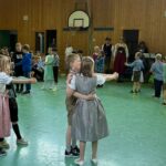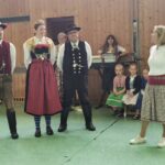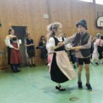 Vom Trachtenverein Hinterskirchen stellten sich die Jugendleiter Veronika Hetzel und Mario Zänker und der Trachtenvorstand Sebastian Obermeier vor. Veronika und Mario übten mit allen Kindern der Schule an zwei Vormittagen die Volkstänze ein. Wast begleitete die Tänzer mit seiner „Ziach“. Veronika beschrieb ihre traditionelle niederbayerische Bauerntracht und die vielen Aktivitäten des Vereins wie Goaslschnoizen, Theaterspielen, Musik- und Gesangsgruppen und Volkstanz. Besondere Erlebnisse im Vereinsleben waren die Teilnahme an den Olympischen Spielen in Montreal und die Reise nach Rom zum 85. Geburtstag von Papst Benedikt. Veronika betonte, dass die Verbundenheit zur Heimat und das Kennenlernen des Brauchtums für die Kinder auch in der heutigen Zeit wichtig ist. Der Verein würde sich sehr über neue Mitglieder freuen. Nach einer Tanzeinlage von Vroni und Mario starteten die Aufführungen der Kinder.
