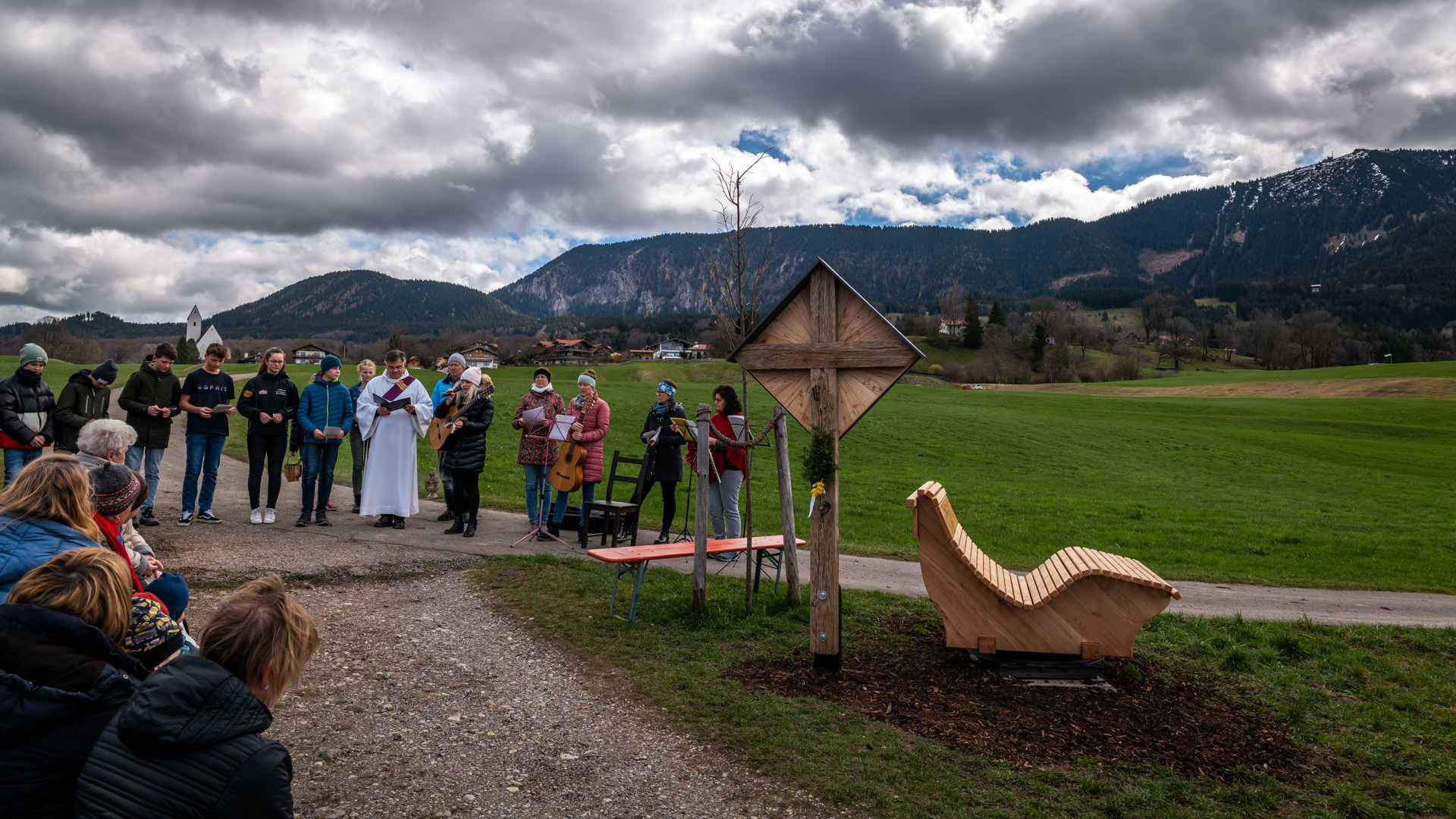 Segen für Wegkreuz und Ruhebank in der Samerberger Filze