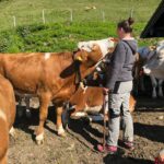 Dieser Weg führte nach dem Abitur am Miesbacher Gymnasium zu einer dreijährigen, erfolgreich abgeschlossenen Schreinerlehre der Schreinerei Eham in Hausham. „Das war eine spannende, aber auch eine lustige Zeit“ – so die 25-Jährige, die dann acht Semester an der Technischen Hochschule Rosenheim den Studiengang Innenausbau mit dem Bachelor abschloss. Als fertige Innenausbauingenieurin arbeitete sie zu Beginn im Büro ihres Vaters, der als Bauingenieur tätig ist. „Der Gedanke und die Idee einmal auf der Alm was zu tun, der ließ mich einfach nicht los und so habe ich mich Anfang des Jahres beim AVO beworben. Kurze Zeit später meldete sich die Bauersfamilie Mayer aus Samerberg-Schilding bei mir.“ An einem schneereichen März-Tag ging die Interessentin mit der Jungbäuerin Elisabeth auf die Alm und ließ sich viel zeigen. „Vieles muss man einfach lernen, aber wenn man handwerkliches Geschick und einen guten Willen hat, dann geht das schon.“ Gerade das mit den Tieren war viel Neuland, aber die Almbauernfamilie hat sie gut angelernt. Insgesamt 57 Jungtiere sind zu betreuen, Melken ist nicht angesagt. Der Arbeitstag beginnt mit dem Kontrollgang. „Das Losmarschieren und die gegenseitige Wahrnehmung der Tiere hat etwas Meditatives an sich, dazu gehört auch die Zaunkontrolle sowie die Weidepflege was unteranderem das Entfernen von Disteln und Unkraut beinhaltet. In dieser Zeit führt sie den Dialog mit den jungen Kühen, die es gerne haben, von einer vertrauten Stimme angesprochen zu werden.