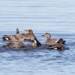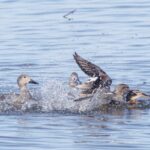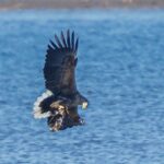 Große Begeisterung nicht nur bei den Fotografen. Seit gestern hat der schon viele Jahre einsam am Chiemsee lebende Seeadler offensichtlich einen Partner/Partnerin gefunden. Gemeinsam genossen sie nach einer frostigen Nacht die ersten Sonnenstrahlen. Ein Mäusebussard hatte vergeblich versucht, eine tote Stockente aus dem Wasser zu heben. Die beiden Adler hatten dies offensichtlich beobachtet, kreisten kurz über der Beute, der „einheimische“ Adler erbeutete die schon ziemlich zerflederte tote Ente und gemeinsam flogen sie zurück ins Achendelta. Ein Sperberweibchen sorgte kurz für Aufregung unter den zahlreichen Wasservögeln. Spießenten, Krickenten und Reiherenten landeten schon kurz darauf wieder, wo sie bei extrem niedrigem Wasserstand im See gemeinsam mit über hundert Graugänsen schon mitten in der Bucht nach Nahrung gründeln konnten. Ein Rotkehlchen sonnte sich im ersten Morgenlicht und die Schnatterenten balzten aufgeregt während etwa 40 Brachvögel in den nun freiliegenden Schlickflächen nach Nahrung suchten und Silberreiher offensichtlich um die besten Fanggründen stritten.