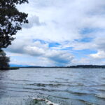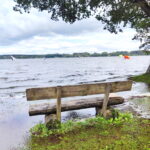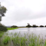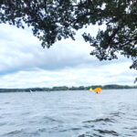 Wasser überall – so auch am Badeplatz in Pietzing und am Simssee. Trotz der unwittrigen Verhältnisse wagen sich Windsurfer noch auf das Wasser, was auf Unverständnis der Betrachter stößt.
