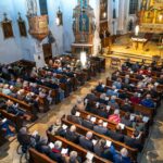 Mit dem Lied „Wohin soll ich mich wenden“ aus der Schubert-Messe und dem Danklied aus der „Bauernmesse“ zeigte Berger, dass weitere Lieder aus dem Gotteslob und darüber hinaus im Jubiläumsbüchlein gesammelt werden.  Weiter ging es mit beliebten Marienliedern wie „O Maria, sei gegrüßt“, „Heiligste Jungfrau“ und dem „Gebet in allen Anliegen“. Das Büchlein enthält zahlreiche Heiligenlieder. Das von der Hl. Cäcilia und Karl dem Großen durften alle Besucher musizieren. Die Hymnen aus Tirol und Bayern leiteten den Abschluss ein, ein stimmgewaltiges „Großer Gott, wir loben dich“ bildete den Schlusspunkt der absolut gelungenen Singstunde.